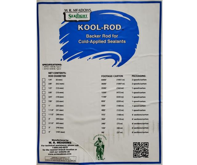 BACKER ROD, 2", $/FT, 6'PC, 360'/CTN