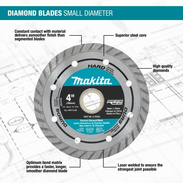 DIAMOND BLADE, 4", HARD MATERIAL, TURBO
