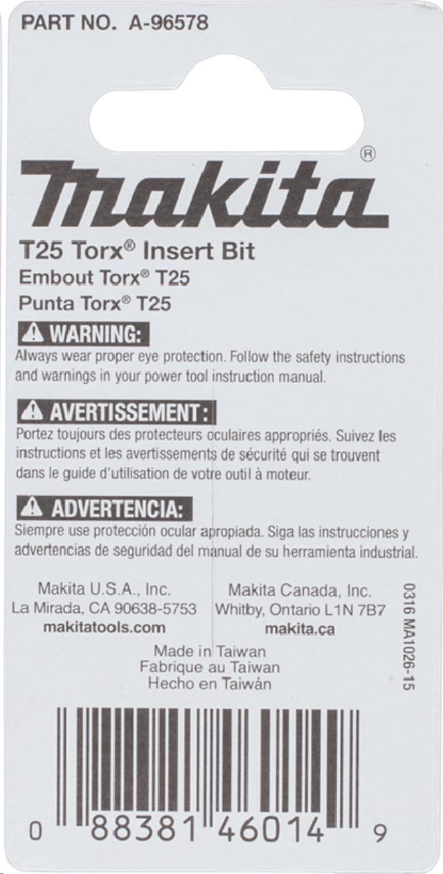 T25 Torx® 1" Insert Bit, 2/pk